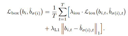 decoder의 출력값 O에 FFN을 적용해 box prediction(중심좌표, 상대적인 높이 너비)를 출력합니다. 이제 DETR과 동일하게 구현합니다. 각 예측값에 gt를 할당하는 optimal matching 알고리즘을 적용합니다. 각 frame에 n개의 instance를 갖고 있는데 이미지에 존재하는 instance가 n보다 작으면 백그라운드를 나타내는 $\theta$로 padding 합니다.