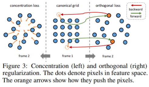 concetration regularization도 추가합니다. concetration regularization은 reference frame에 존재하는 인접 포인트들이 target frame에서 함께 모여있도록 합니다.