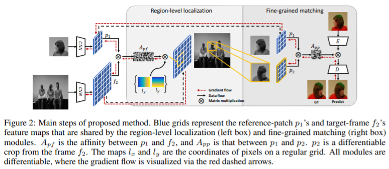 현재 frame에서 무작위로 추출한 image patch와 다음 frame 전체 이미지를 CNN에 전달해 생성한 두 feature map 사이의 유사도를 계산합니다.