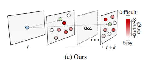 confidence score T가 배경이나 반복되는 패턴에의해 모호한 matching에 덜 민감하도록 영역을 제한합니다. local window 크기는 temporal distance에 따라 변경합니다.