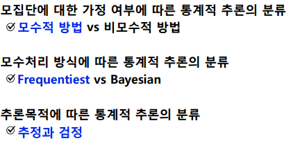 (1) 모집단에 대한 가정 여부에 따른 통계적 추론의 분류