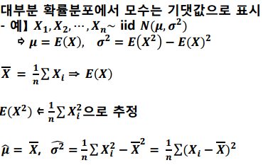 표본의 기댓값, 분산을 모수로 추정하는 방법입니다.