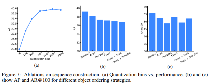 auto-regressive 방식을 사용한다는게 흥미로운데, 앞에서 예측한 바운딩 박스를 보고 다음 바운딩 박스를 예측합니다. 이미지 내에서 바운딩 박스의 순서는 아무런 의미가 없지 않을까 싶은데.. auto-regressive 방식을 채택했네요. 실혐 결과에 따르면 random order로 바운딩박스를 출력했을 때가 성능이 가장 높습니다.