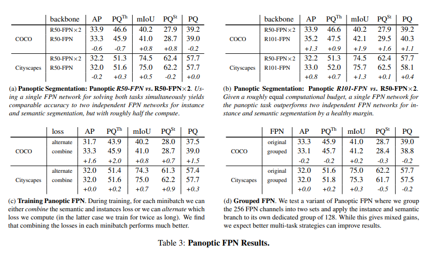 논문에서 재밌는 점은 Instance loss의 가중치를 0으로 두면 semantic task가 되는데, instance loss를 가해주면 semantic task의 성능이 향상됩니다. 반대도 마찬가지입니다. 이는 각 task에서 서로의 정보가 필요하다는 것을 나타냅니다.