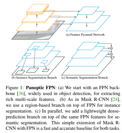 Panoptic segmentation task를 수행하기 위한 semantic, instance seg task에 대한 single network 입니다.