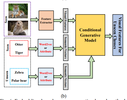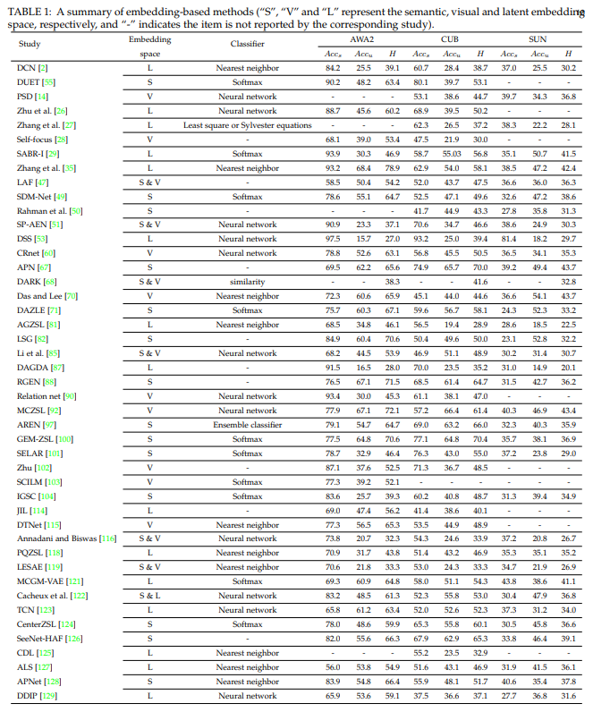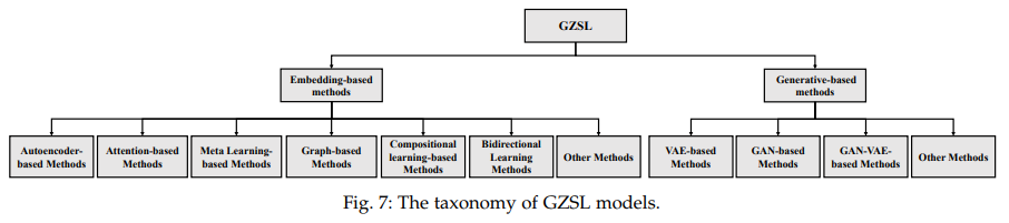 위 그림처럼 GZSL 방법은 정말 다양하다. 큰 범주로 나누면 embedding-based method와 generative-based methods로 볼 수 있다.