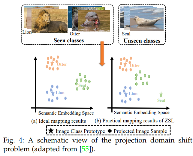 seen class의 data로 ZSL, GZSL의 mapping 함수가 학습되었으므로 unseen class에 대한 adaption이 없다면 domain shift problem이 발생한다. 이 문제는 주로 unseen의 아무런 정보없이 학습하는 inductive based method에서 발생한다.