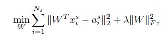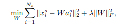 W가 학습된 함수, x는 visual feature, a는 semantic information이다. 두 번째 항의 람다는 정규화항.