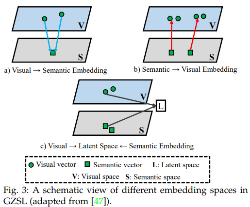 이 방법은 GZSL이 학습한 함수가 visual space의 vector를 semantic embedding으로 mapping하는 방법이다.
