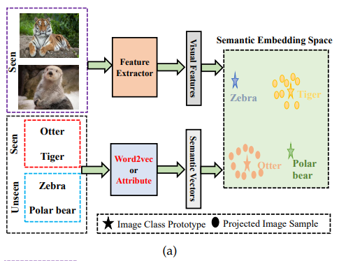 seen의 visual feature와 semantic information만을 입력 받아 학습이 진행된다. 어떻게 보면 가장 어려운 task라고 볼 수 있다.