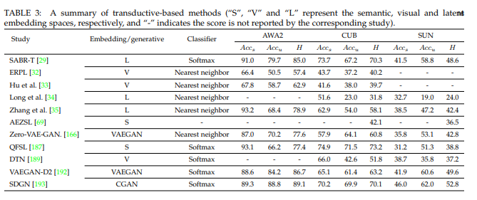 (2) Transductive semantic GZSL