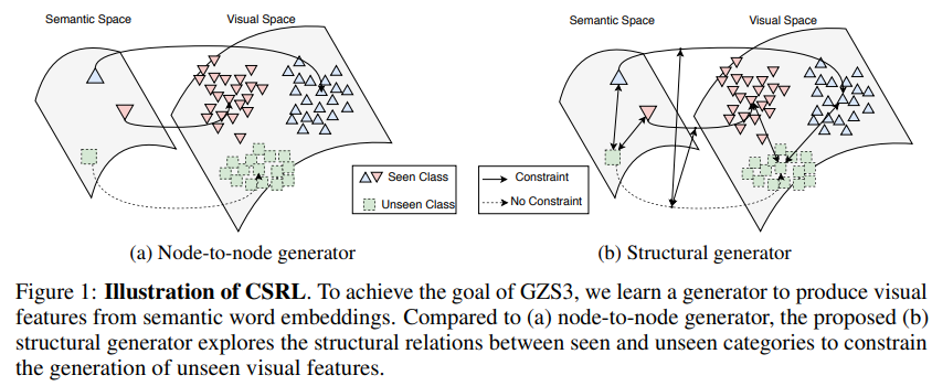 seen과 unseen 사이의 structural relation을 사용하여 생성된 unseen visual feature를 제한한다. seen과 unseen에 대한 word embedding이 갖고 있는 관계 정보를 이용하여 unseen 을 제한한다면, generator는 더 좋은 unseen visual feature를 생성할 것이다.