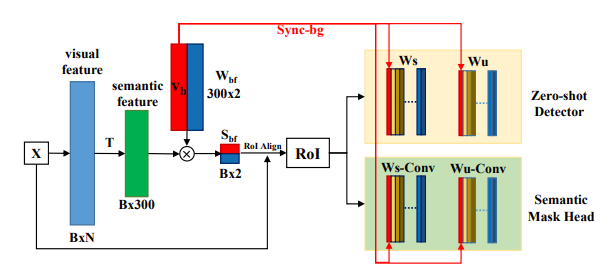 Sync-bg는 zero-shot detection와 semantic mask head에서 사용하는 백그라운드에 대한 weight를 동기화 시켜주는 역할을 한다.