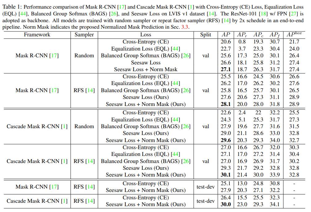 Seesaw Loss for Long-Tailed Instance Segmentation