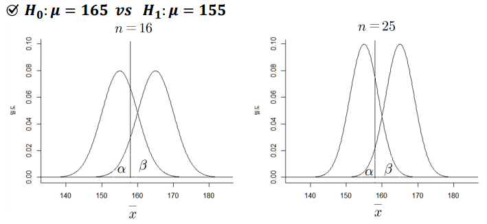 표본크기(n)이 큰 경우 $\alpha, \beta$가 작아진 것을 확인할 수 있습니다.