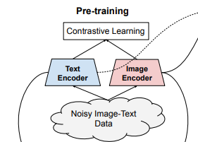 image-text pair로 이루어진 dataset을 활용하여 image encoder와 text encoder 를 학습시킨다. 손실 함수는 constrative loss를 사용한다.