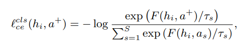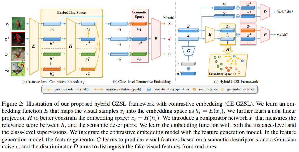 E가 이미지로 부터 추출한 h와 descriptor a를 concat하여 F로 보낸다. 그리고 softmax를 거쳐서 class를 예측한다. F는 h와 a 사이의 유사도를 측정하는 역할을 수행하는데, F의 입력값에 h에 해당하는 descriptor를 concat한건 정답이 되고 negative에 해당하는 것들은 False가 되도록 softmax를 수행하여 contrastive learning을 한다.