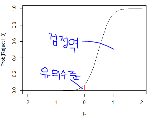 R을 이용해서 유의수준과 검정력 함수를 그려보겠습니다.