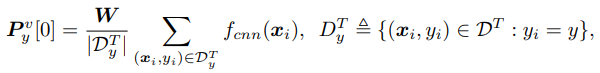 visual prototype의 초기값은 class representation의 평균값으로 사용. 아래 식에서 W는 semantic prototype과 차원을 동일하게 해주는 transformation matrix이다.