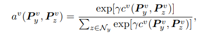 attention module은 다음과 같이 정의된다. cosine similarty 를 계산하고 soft max로 전달해주는 형태.