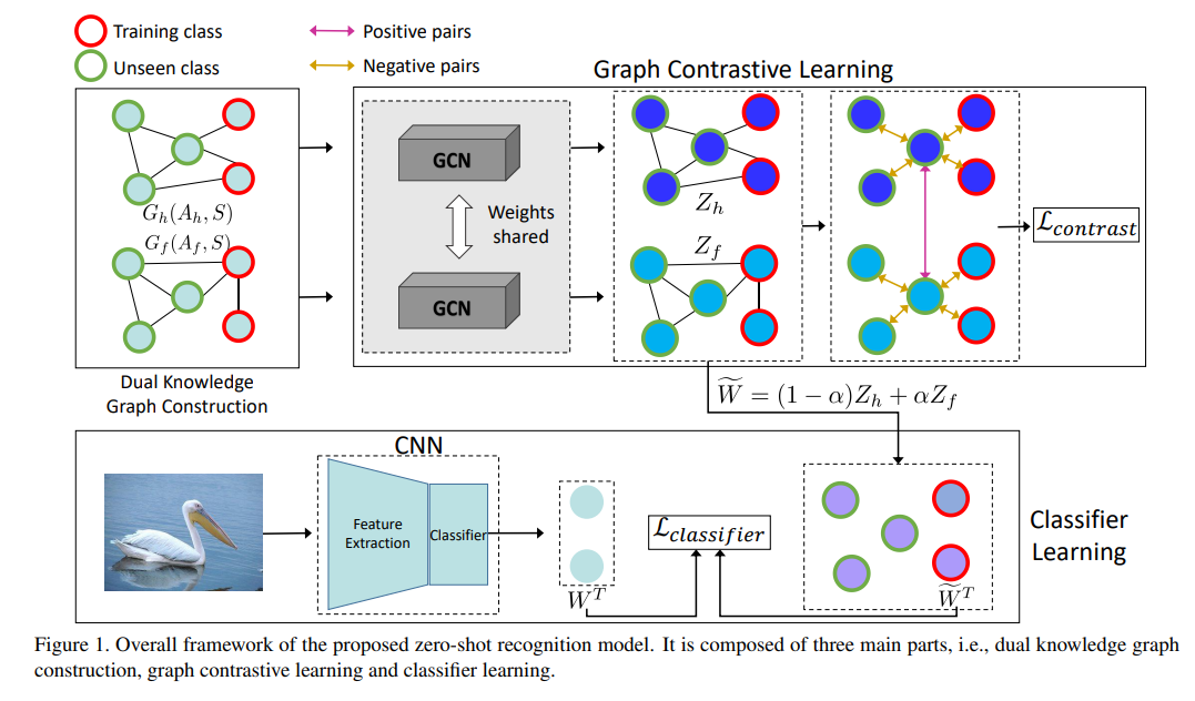 hierarchy graph와 semantic correlation graph를 사용한다. 두 정보를 graph에 embedding하고 GCN으로 학습시켜 최종 representation을 visual classifier를 생성하기 위해 사용한다.