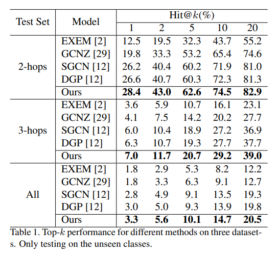 hierarchy knowledge는 WordNet으로 얻었고, semantic correlation은 class와 top-K semilarity를 가진 class를 사용하여 인접 행렬을 만든다.