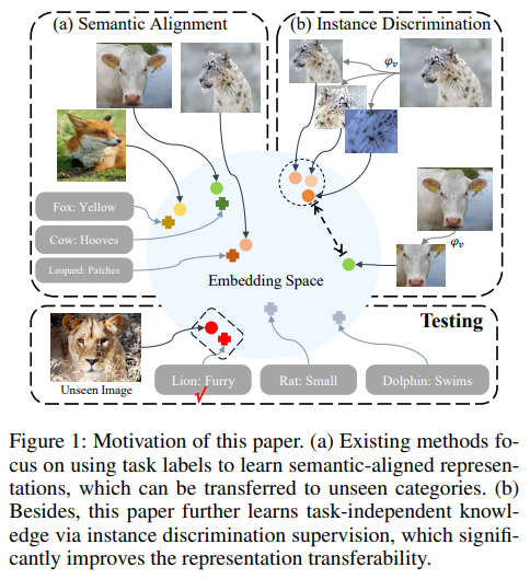 Zero-Shot Learning은 semantic-visual alignment를 통해 transferable knowledge를 학습시켜 unseen을 예측할 때 이용한다. 이전 방법들은 semantic-visual alignment에 집중을 해왔는데, unseen에 대한 visual feature가 존재하지 않고 seen에 대한 categorie만을 활용하므로 seen bias problem이 존재한다.