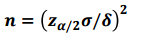 (3) 이 식으로부터 표본크기(n)을 도출할 수 있습니다.
