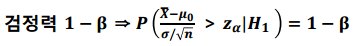검정력은 1-B이므로 P()안의 부호를 바꿔줘야 합니다.