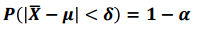 (1) 100(1-a)% 신뢰수준에서 허용오차범위가 $\pm\delta$라고 하면 다음과 같이 표시할 수 있습니다.