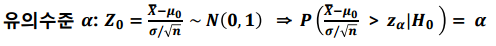 유의수준은 $H_0$이 참일 때 $H_0$이 거짓이라고 판정한 것입니다. 따라서 $z_a$보다 커야합니다.