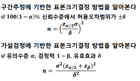 정규분포의 경우 오차범위를 이용해서 표본크기를 결정할 수 있습니다.