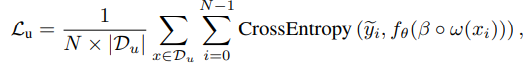 unlabeled image에 대해서는 strong augmentation을 가한뒤에 얻은 prediction과 pseudo label 사이의 cross entropy를 계산한다.