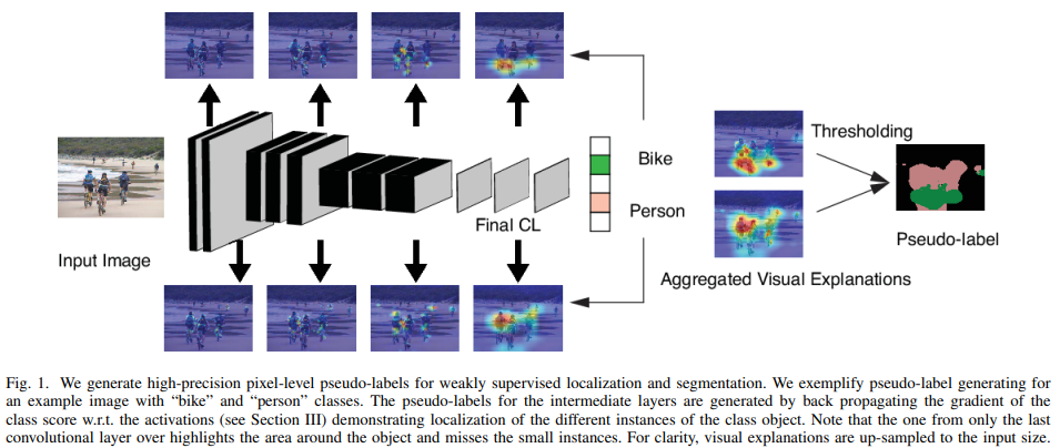 Current weakly supervised object localization and segmentation rely on class-discriminative visualization techniques to generate pseudo-labels for pixel-level training. Such visualization methods, including class activation mapping (CAM) and Grad-CAM, use