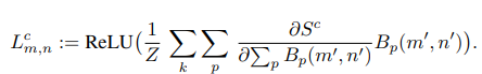 B가 intermediate feature map을 의미하고 W는 B feature map에 conv 연산이 적용되는 weight matrix 이다. m'와 n'는 ReLU 연산이 positive 값만 통과시키므로 B feature map에서 positive value를 갖고 있는 인덱스를 나타낸다. 이렇게 map을 뽑아내면 각 feature map을 활용할 수 있다. 단순히 grad-cam으로 intermidiate feature map을 활용하는 것은 성능이 잘 안나온다.