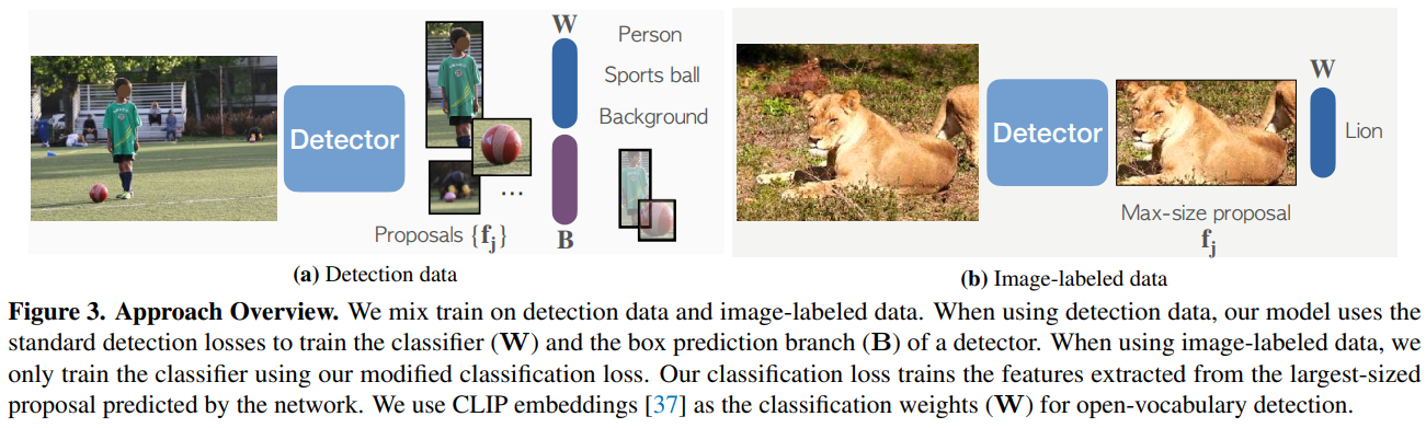 classification dataset은 detection set보다 class수가 훨씬 많으므로 open-vocabulary detection이 가능하게 한다.
