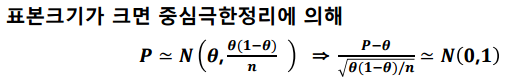 모비율($\theta$)를 표본비율(P)로 추정한 것입니다.