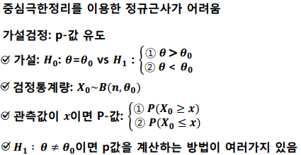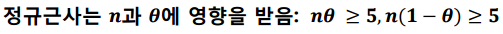 표본크기가 작은 경우에는 중심극한정리를 이용한 정규근사가 어렵습니다.