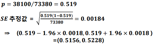 95% 신뢰구간은 0.5156 ~ 0.5228 입니다.
