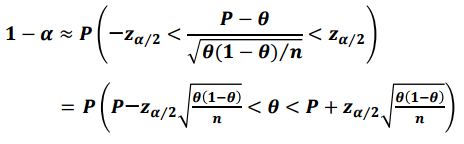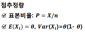 모비율($\theta$)를 표본비율(P)로 추정한 것입니다.
